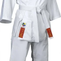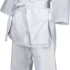 Lett, tradisjonell karatedrakt/karategi med elastisk linning og skjult snor. Polyester / bomullsmiks. En tøff, økonomisk karatedrakt for nybegynnere. Finnes kun i hvit og hvitt belte følger med.