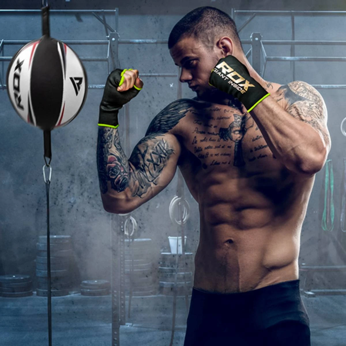 Slank, stilig, støttende innerhanske som er ideell for forskjellige typer kontaktsport. Et flott alternativ til boksebandasje, denne høyteknologiske hansken beskytter mot støt og hjelper til med å forhindre håndskader. Disse beskyttende innerhanskene har en spesiell elastikk for komfort og ytelse, halvfingerdesign for forbedret grep, pluss utvidet tommel- og håndleddsbeskyttelse for den ultimate forsterkningen når du trener. Lett å ta av og på, og maskinvaskbar. Finnes i 4 tilgjengelige størrelser.