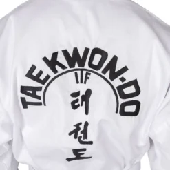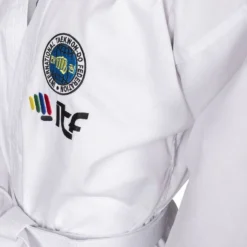 ITF nybegynnerdrakt for Taekwondo-utøvere. Jakken har borrelåslukking. Buksene har elastisk linning.
