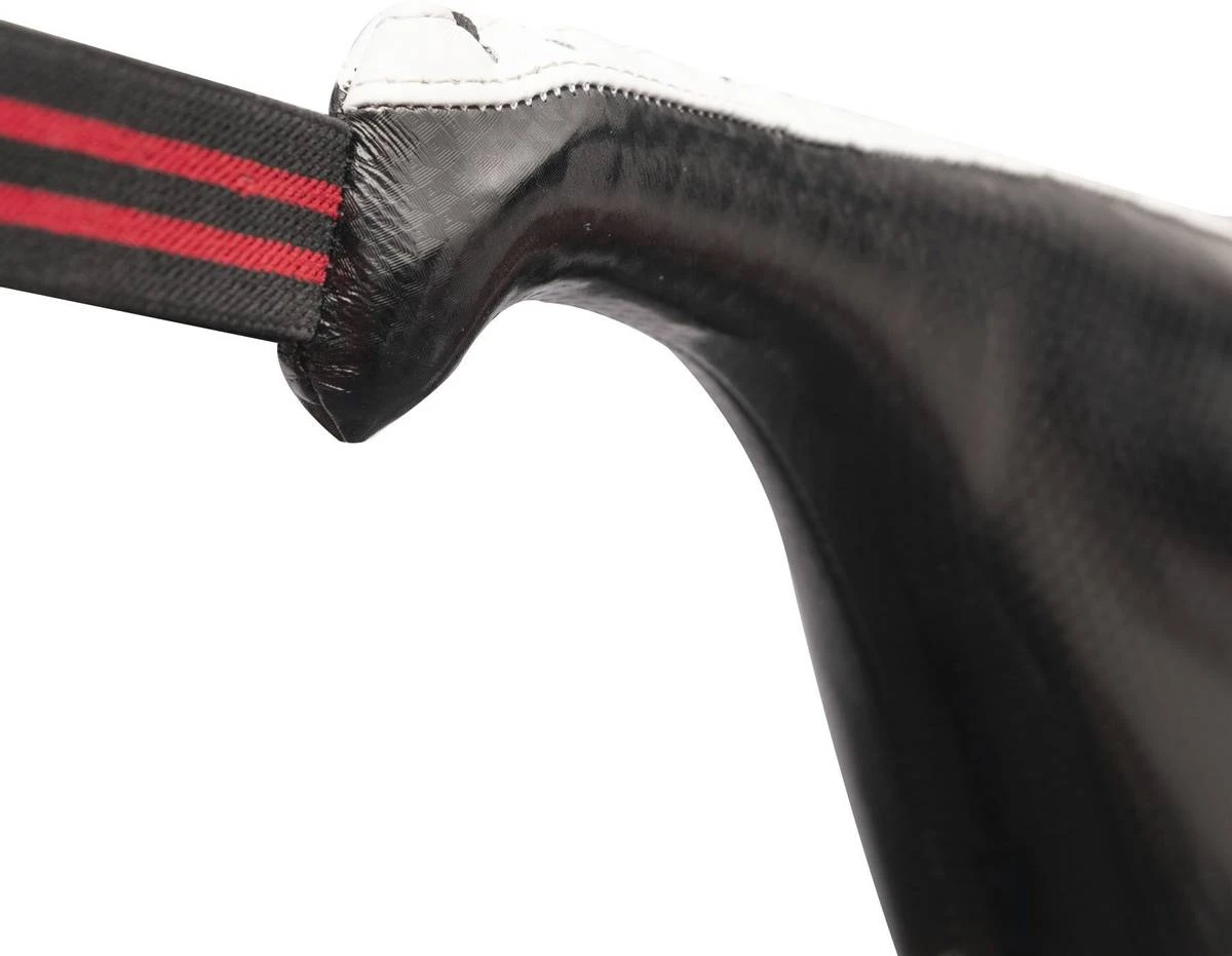 With the TOP TEN Focus Mitt “Coach Racket,” you ensure the right momentum in your martial arts training. The shape of a racket enables you to react quickly and places extraordinary demands on endurance, fitness, and reflexes. Suitable for speed training, the “Coach Racket” has a sturdy strap that ensures the best possible grip in addition to the padded handle. The target area is visually highlighted with the typical TOP TEN Company design so that you can’t lose sight of your target at all speeds. The robust synthetic leather cover is designed for the toughest loads and encloses the striking surface and the ergonomic handle. This means that the training tool can be easily cleaned, which meets the requirements of communal and group sports.