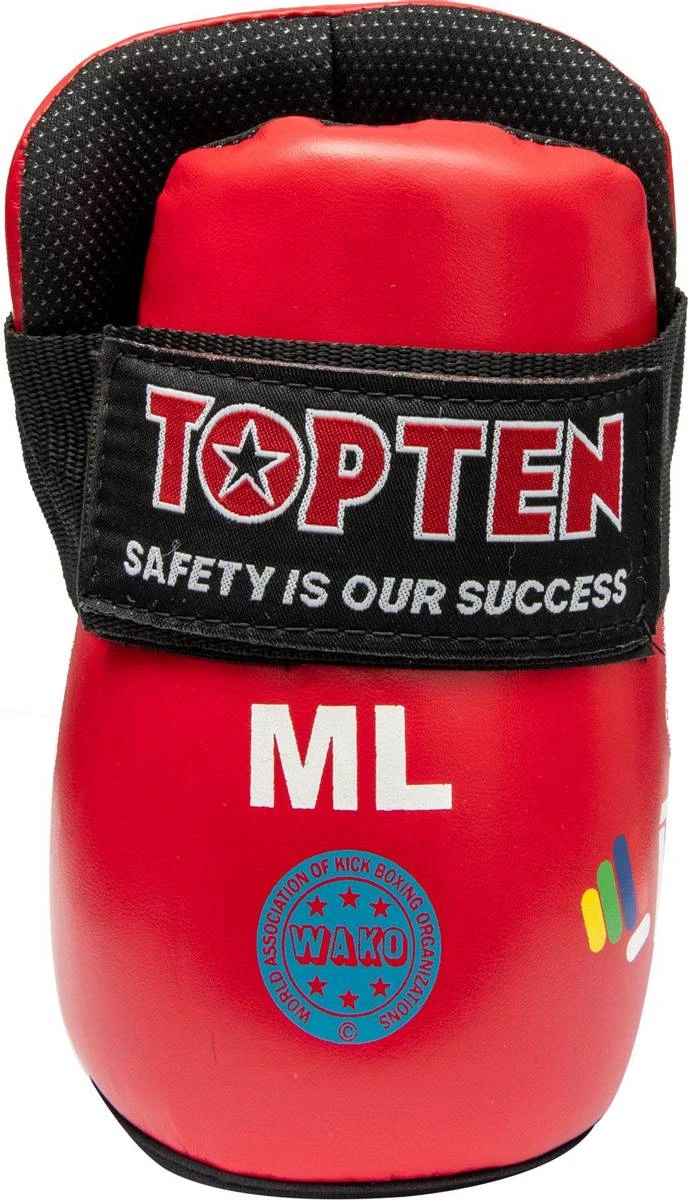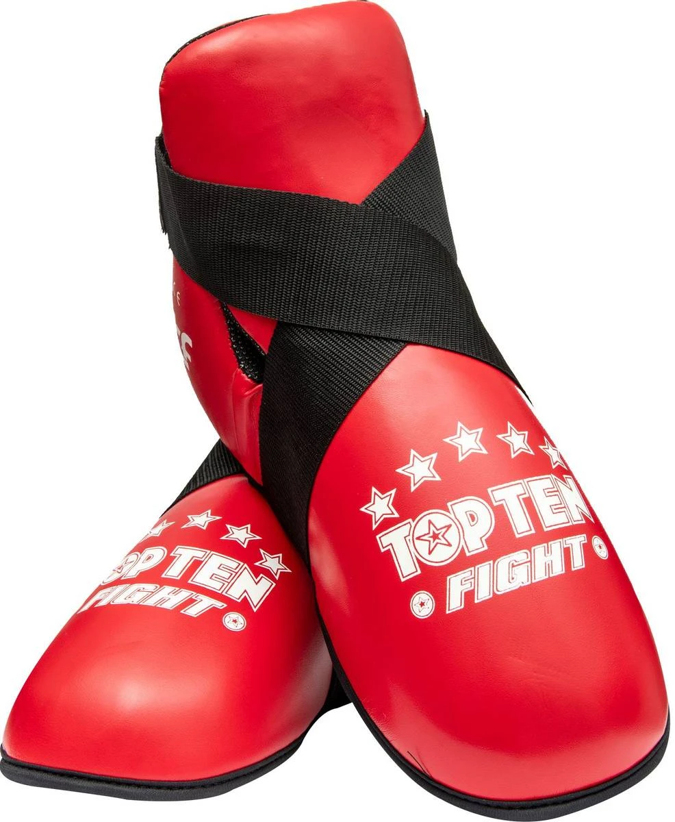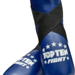 Top Ten Vristbeskytter/kicks Fight – godkjent av ITF, NKBF og WAKO. Brukes mest til WAKO Kickboxing og ITF og NTN Taekwondo. Paddingen består av det ekstremt støtabsorberende Bayfill for å beskytte mot vrist og ankelskader. Laget av kunstskinn.