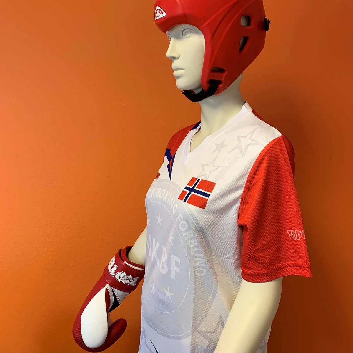 Den offisielle treningsskjorten til det Norske landslaget i Kickboxing. Vi har holdt av 60 stk som videreselges og disse er helt like bortsett fra at det ikke står teksten » Norway» bak.