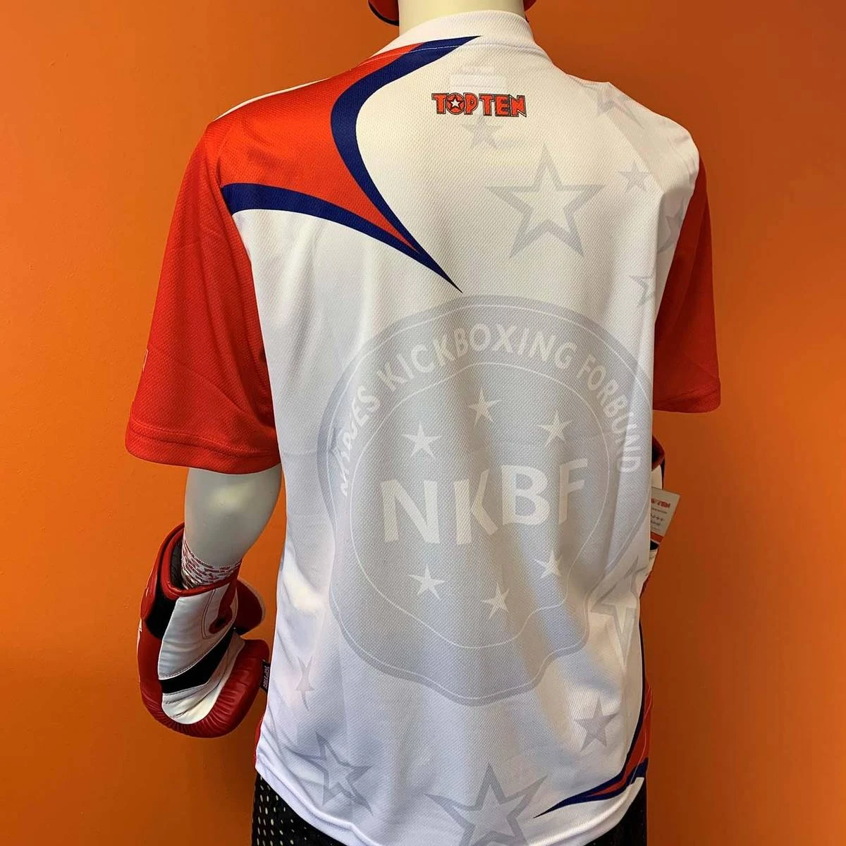 Trener du kickboxing i regi av Norges kickboxingklubb, så er dette et «må-ha» produkt! Støtt kampsporten du elsker. Produsert i høy kvalitet sublimering utskrift. Du representerer landet ditt og din sport med denne skjorten. Den offisielle TOP TEN NKBF kickboxinglogoen på forsiden og baksiden viser din lidenskap.