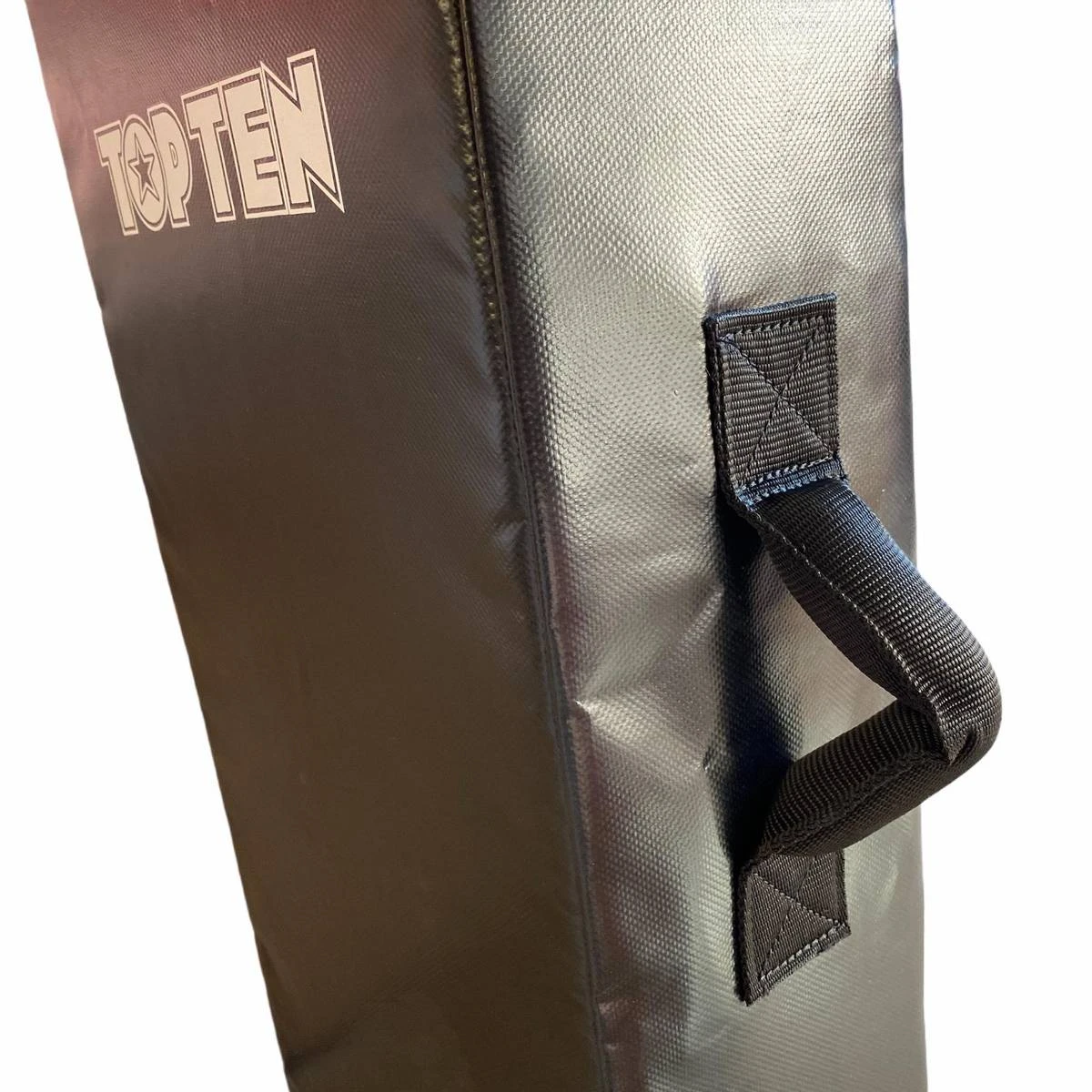 TOP TEN sin multifunksjonelle sparke og slagpute er perfekt for kondisjonering av slag, slag, albuer og knær, og har tre stropper, samt et kraftig håndtak på baksiden. I tillegg til tre praktiske sideplasserte håndtak som gjør det mulig å praktisere en rekke kampsportteknikker og treningsstiler. Puten kan holdes i lengderetningen eller på siden, noe som gir en rekke treningsmuligheter og lar holderen posisjonere seg for å kreve raske, presise og vinklede spark fra fighteren. Flat sparkeflate er også flott for generell trening, bygningshastighet og utholdenhet. Laget av Nama Hide-lær med en skumkjerne med høy tetthet for maksimal støtdemping. Lett å tørke av før og etter bruk.