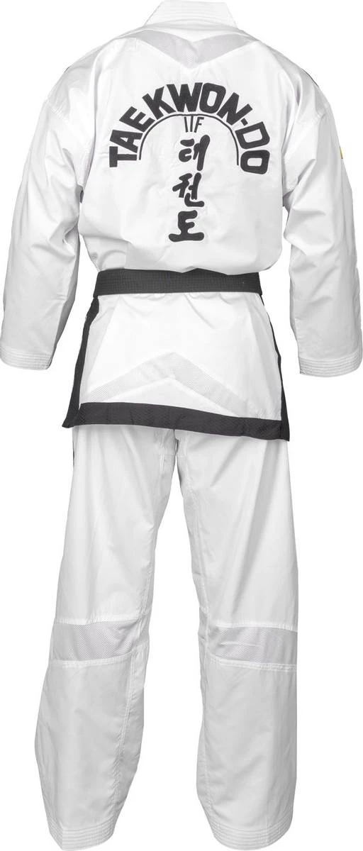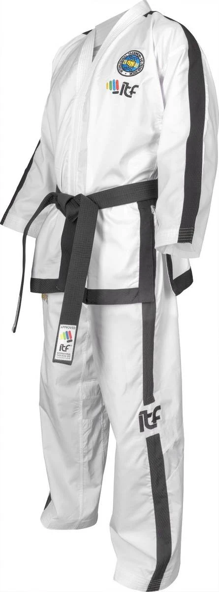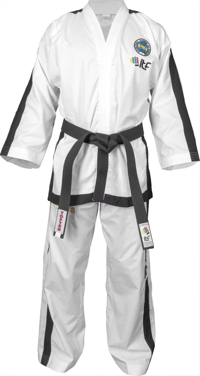 Denne drakten fra ITF Premium Gold Edition er en TKD høykvalitets-drakt. Laget av spesialutviklet «Diamond Flexz» -materiale (96% polyester og 4% elastan), gir det en enorm bevegelsesfrihet, samtidig som den er veldig behagelig å ha på seg. Den funksjonelle «Diamond» -strukturen i stoffet sikrer en balansert fuktighetsstyring, materialet er svetteavvisende og hurtigtørkende. Nettinginnsatser på øvre rygg, samt i knær og midjeområdet sikrer god ventilasjon. Høykvalitetssøm i blank overflate og gyldent Top Ten broderi på skulder og ben gjør denne drakten også visuelt et unikt høydepunkt og oppfyller alle krav til International Taekwon-Do Federation ITF.